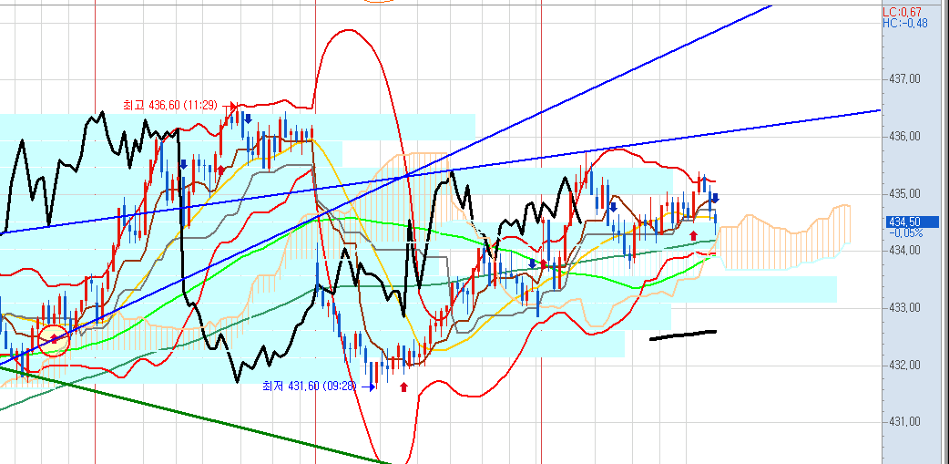 오늘 챠트에서 매수와 매도 신호가 자주 보이는데요,