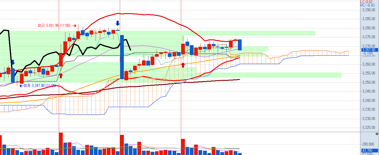그 고점에서 장 초반에 매수 신호가 나왔고,