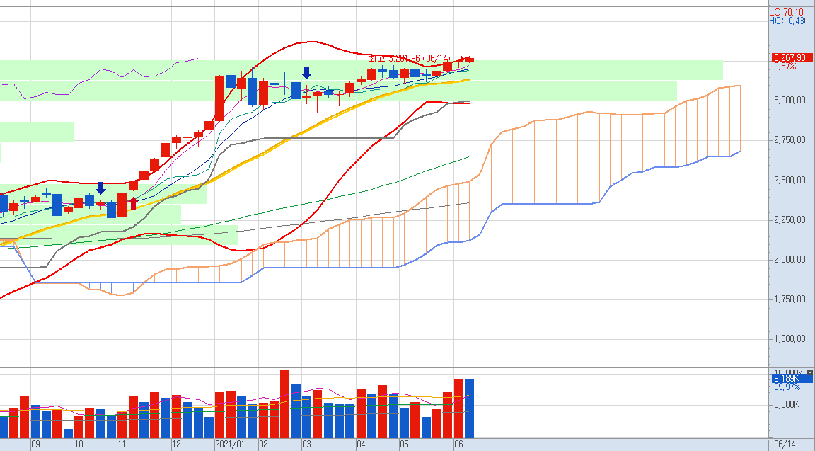 주봉으로 보면 현재 매도 신호 후에 상승하고 있습니다.