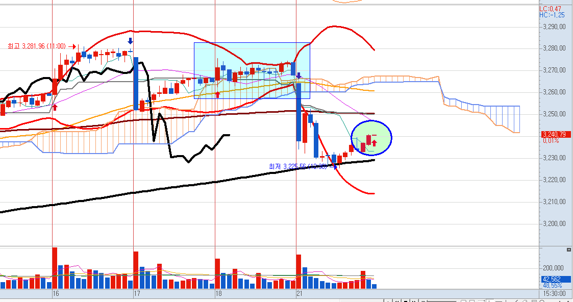 막판에는 매수 신호로 마감하였습니다.