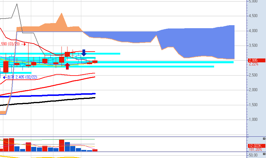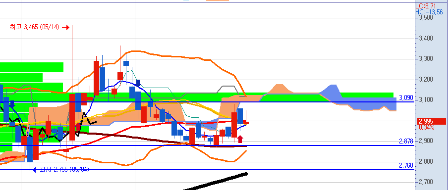 현재 추세선은 2970원 정도에 있습니다.