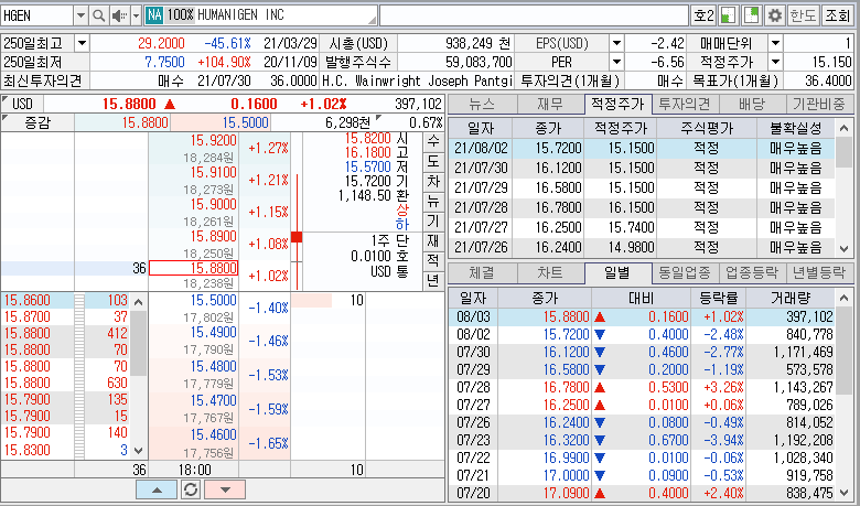 | 받아주는 세력은 어디 갔나요? 휴머니젠(HGEN) 장 마감 시황 분석 (0) | 2021.08.03 |