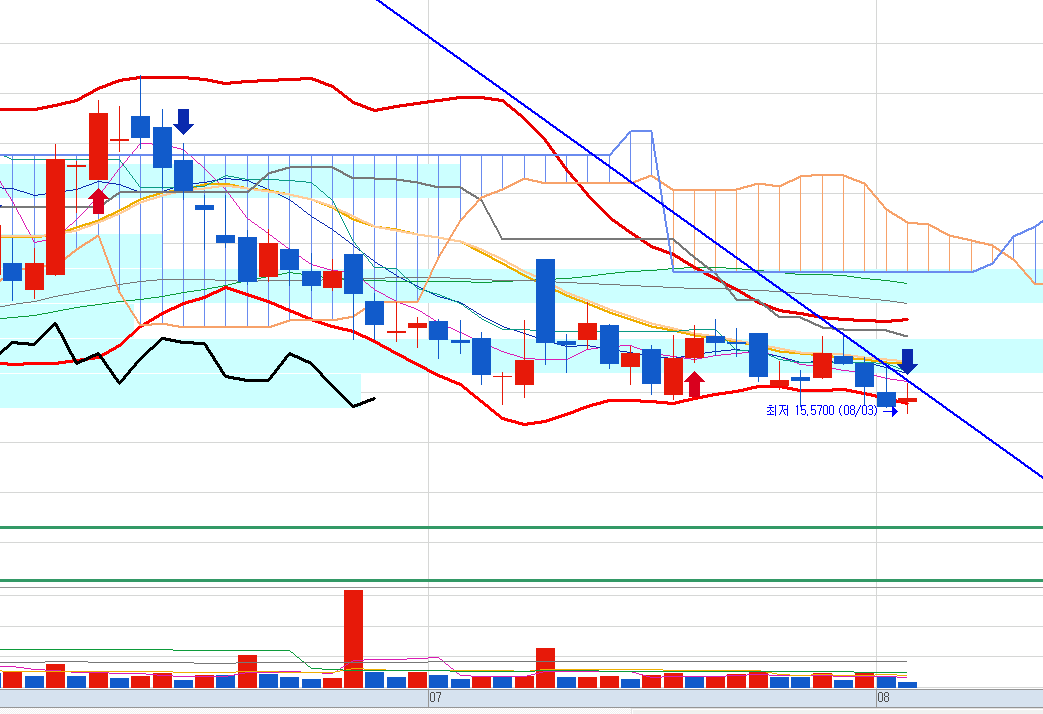 거래량이 적다는 위로 외에는 다른 희망을 당장 찾기가 어려운 현재의 모습입니다.