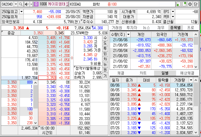 | 일봉 매도 신호 발생! 공매도 증가! 케이피엠테크(042040) 장 마감 시황 분석 (2) | 2021.08.09 |