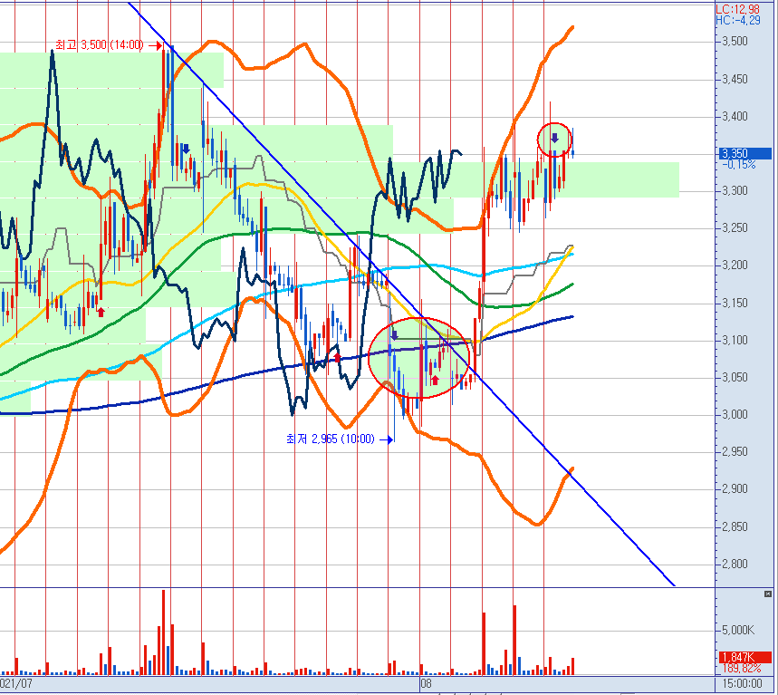 종가는 3,350원인데요, 오늘은 특히 기관의 매수가 강했습니다.