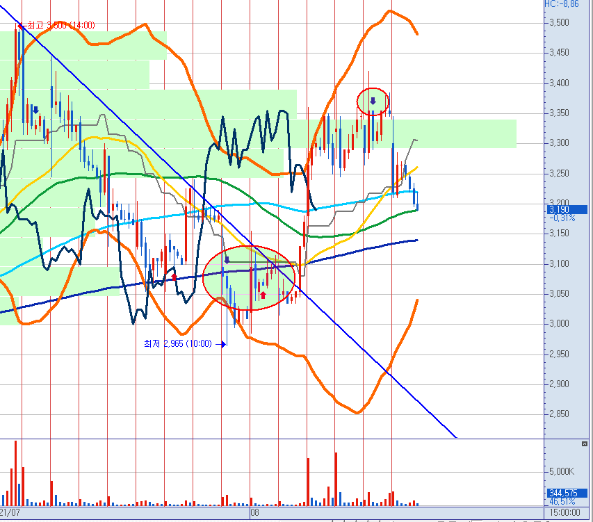 분봉의 신호에 따라 흔들리는 것이 큰 것 같습니다.