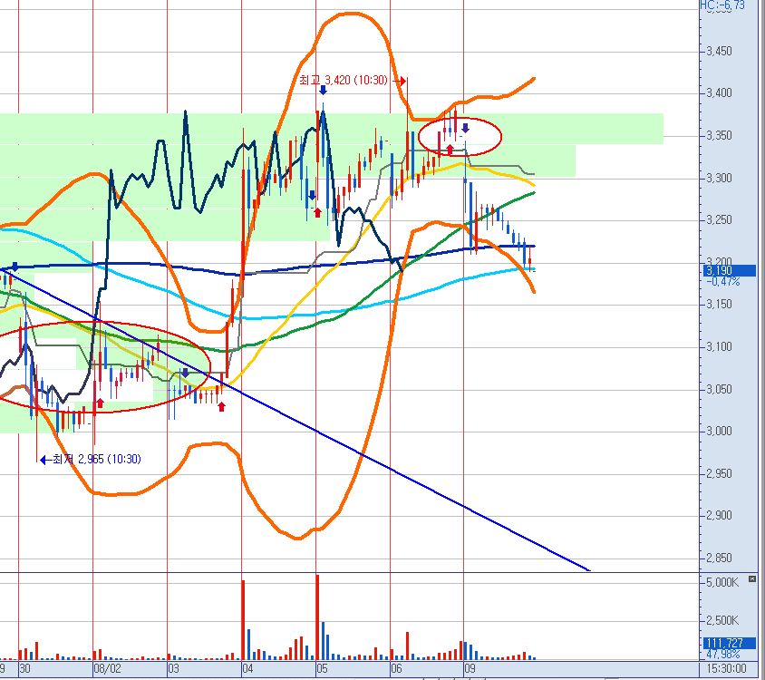 그렇게 본다면 내일은 조정을 끝내고 반등하는 모습을 보여 줄 것 같습니다.