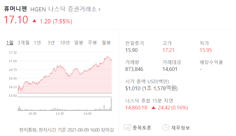 | 지속 상승! 휴머니젠(HGEN) 장 마감 시황 분석 (2) | 2021.08.11 |