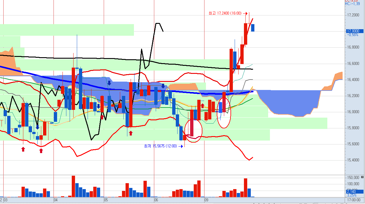 그렇게 급등 패턴의 힘으로 두 개의 이평선을 장악하고