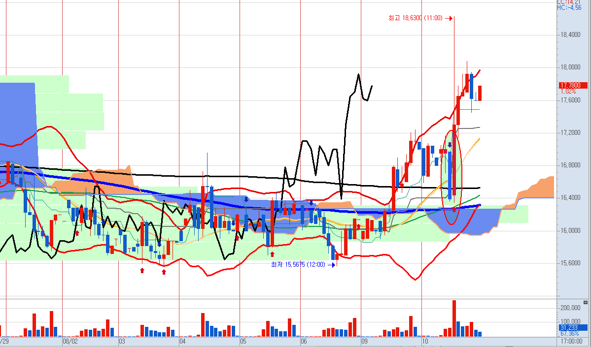 그럼 오늘의 움직임과 위치를 챠트를 통해 살펴 보겠습니다.