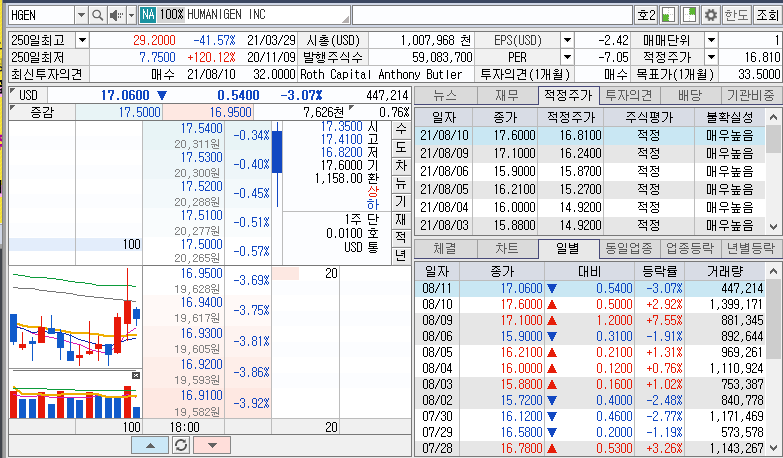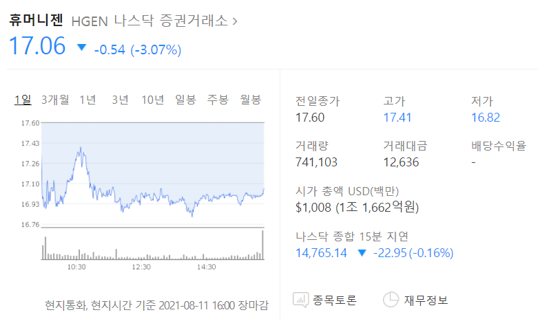 | 역시 한방! 휴머니젠(HGEN) 장 마감 시황 분석 (2) | 2021.08.10 |