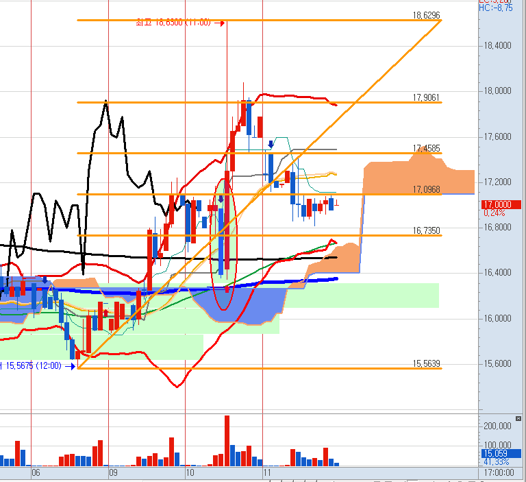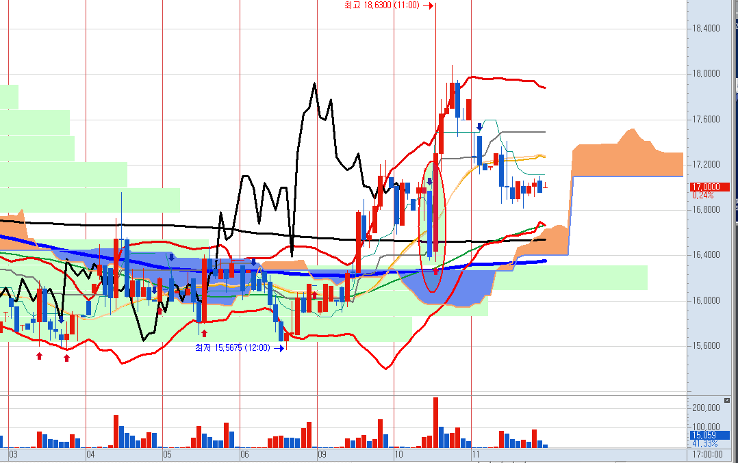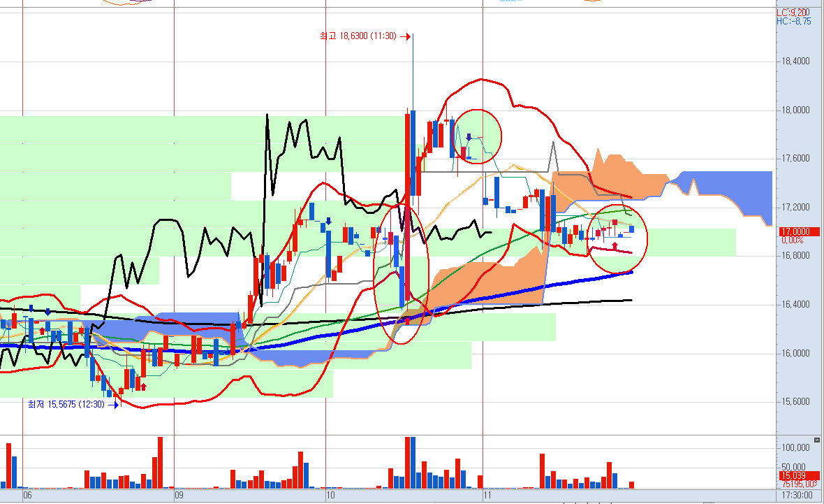 장 중 고점도 -1%정도인 17.41%로 힘이 없었습니다.