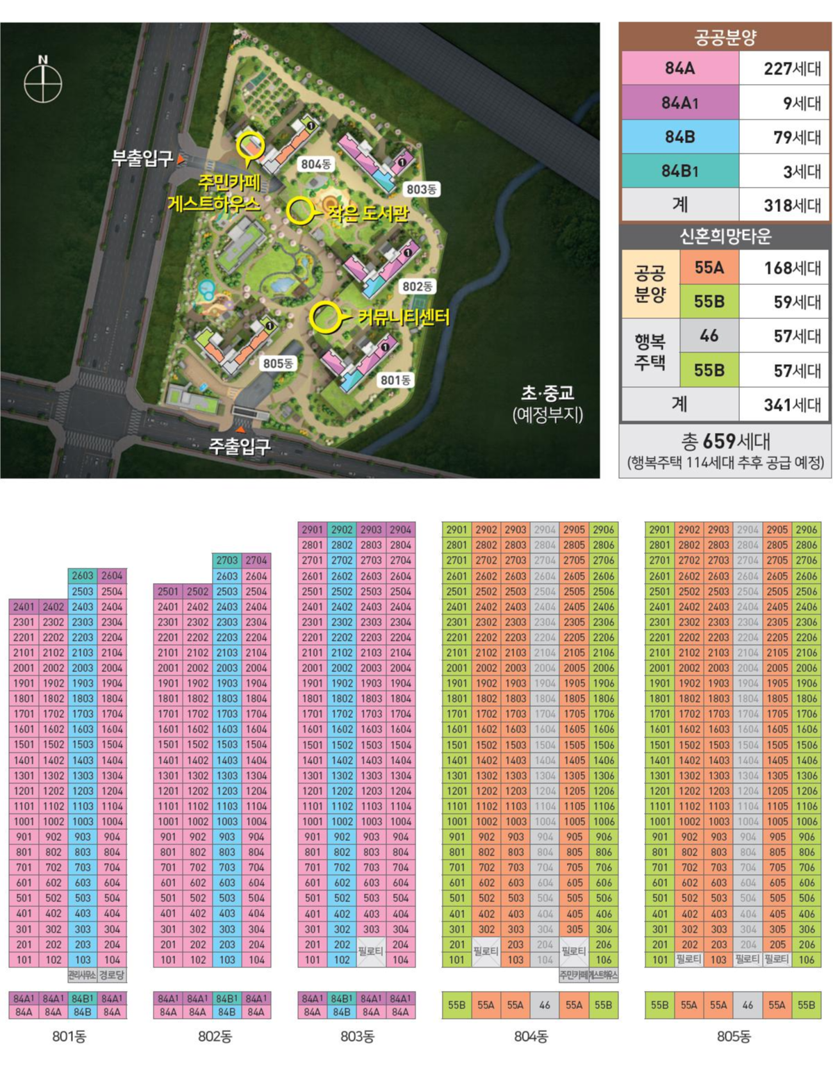 2개 동은 55타입으로 신혼희망타운으로 공급하게 됩니다.