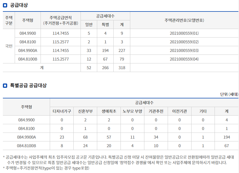 이 중에 특별공급이 266세대이고, 일반 공급은 52세대에 불과하기 때문에