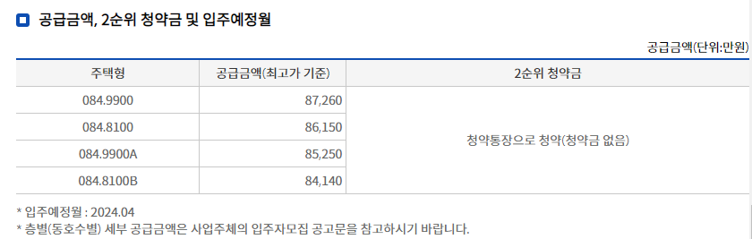 분양가는 약 8억4천만원에서 8억7천만원까지로 구성되어 있습니다.