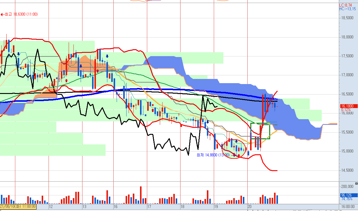 그리고 추가로 검은 이평선까지 올라갔다가 밀리면서 끝났습니다.