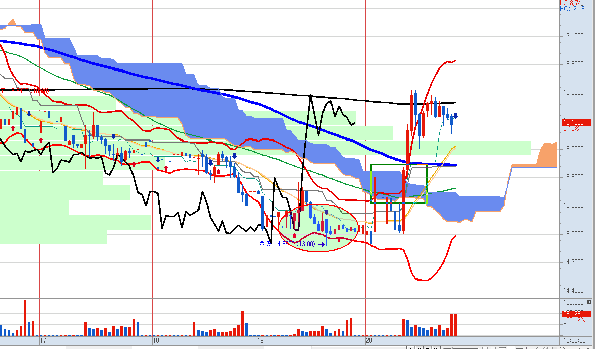 60분 봉에서도 급등 패턴의 힌트가 보였습니다.