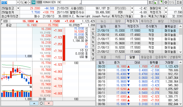 | 급하게 달려가는 휴머니젠(HGEN) 장 마감 시황 분석 (4) | 2021.08.24 |
