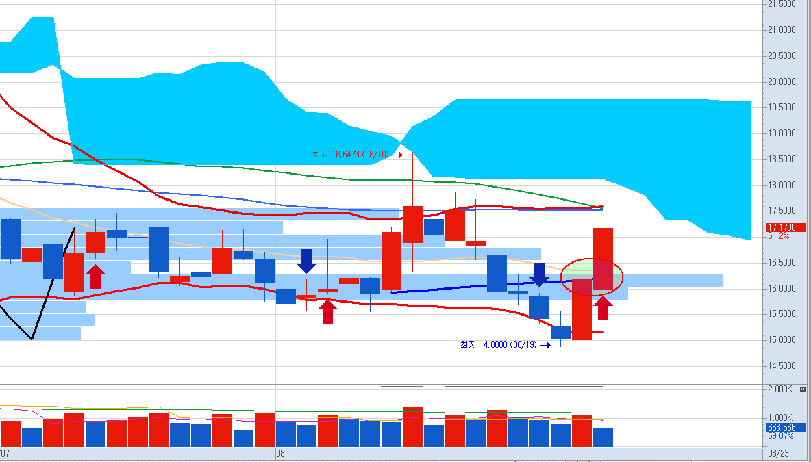 이로써 1주일 이상 하락한 하락분을 2 거래일만에 회복하였습니다. ^^