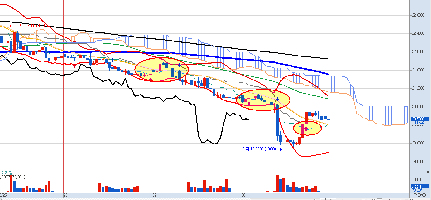 이렇게 보아도 오늘의 저점이 바닥이 될 가능성은 높아 보입니다.