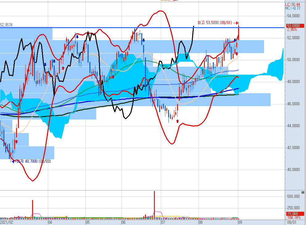주봉도 급등 중입니다.