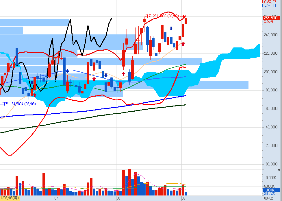 어제 볼밴을 뚫고 올라가는 상승이 있었는데도 더 상승했습니다.