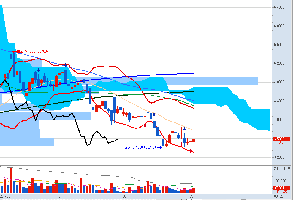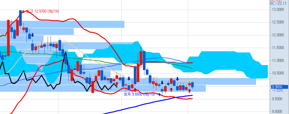 분봉으로 보니 횡보 중인 것으로 보입니다.