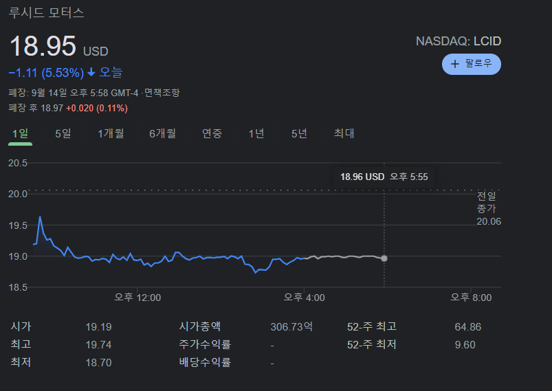 루시드모터스 루시드그룹은 오늘 하락으로