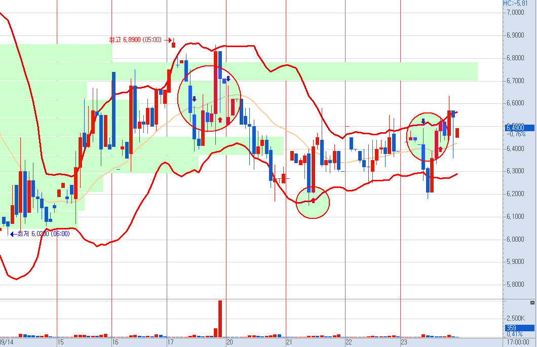 두 번째 원에서 매수 신호 이후 반등이 있었습니다.
