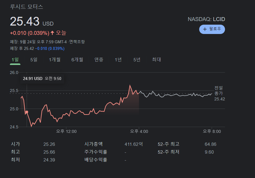 오늘 루시드그룹, 루시드모터스의 주가는 강보합으로 마감했습니다.