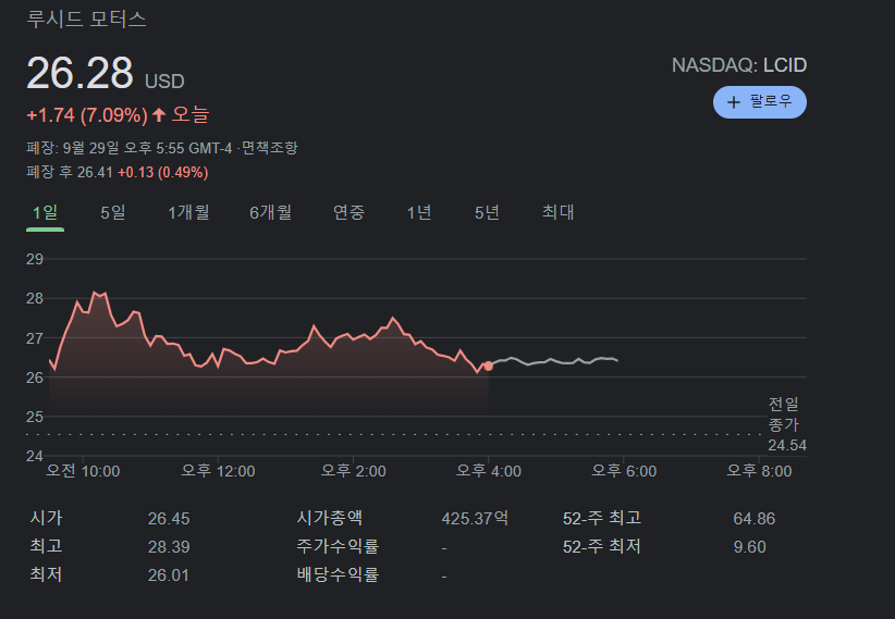 루시드모터스는 오늘도 상승했습니다.