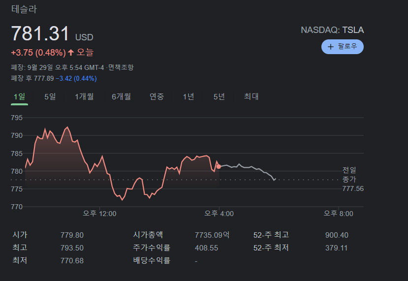 | 어제 예상대로 흘러간 테슬라(TSLA) 장 마감 시황 분석 (0) | 2021.09.29 |