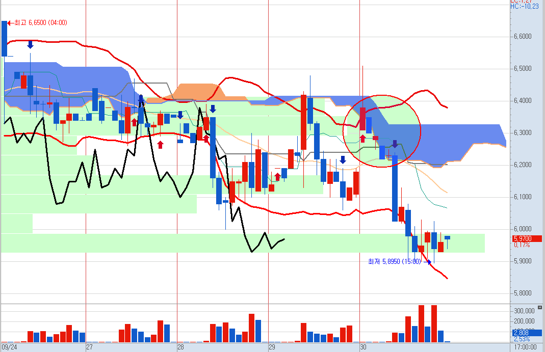 어제 바램처럼 60분 봉으로 매수 신호가 나왔지만