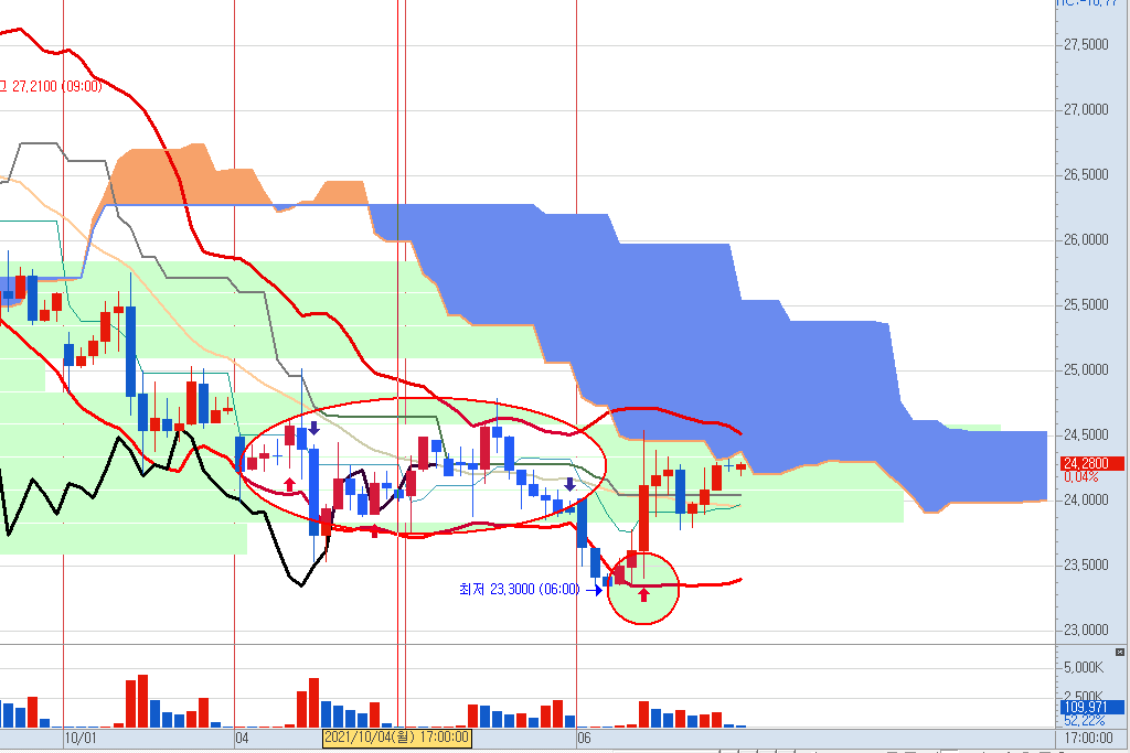 오늘 상승시에 만들어진 매수 신호도 보입니다.