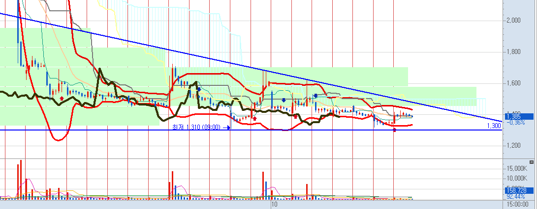 지금으로써는 다음 주나 되어야 주봉에서 반등의 기미가 보이지 않을까 하는 생각이 듭니다.