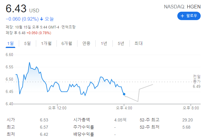 오늘 휴머니젠은 하락 마감했습니다.