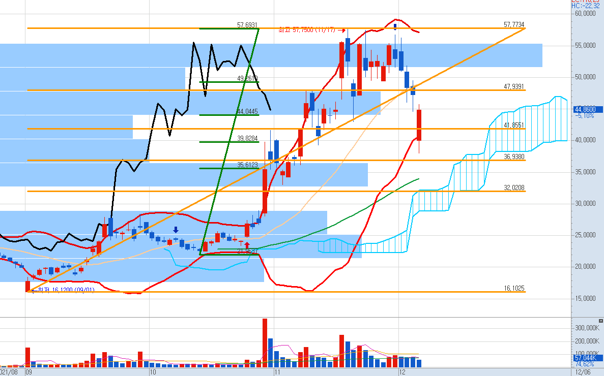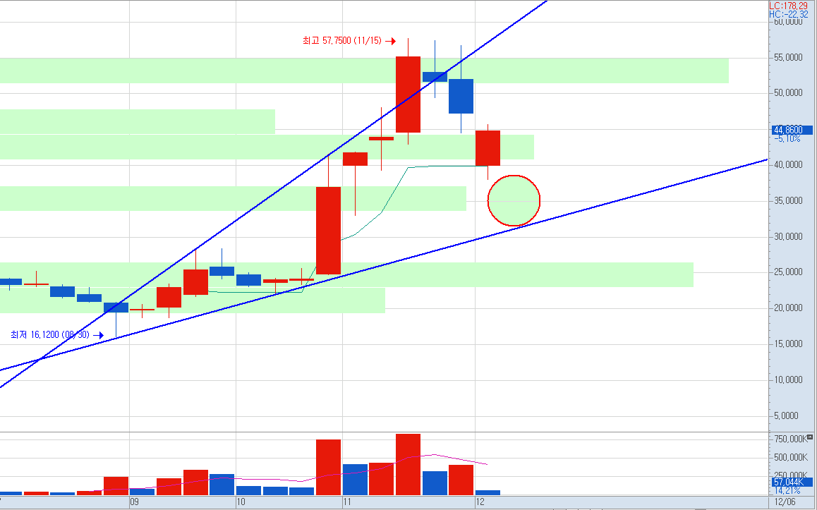 그리고 아래쪽 추세선을 고려하면 30달러 초반까지도 조정을 받는 것이 어찌보면 당연해 보입니다.