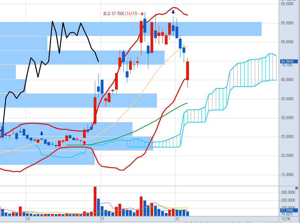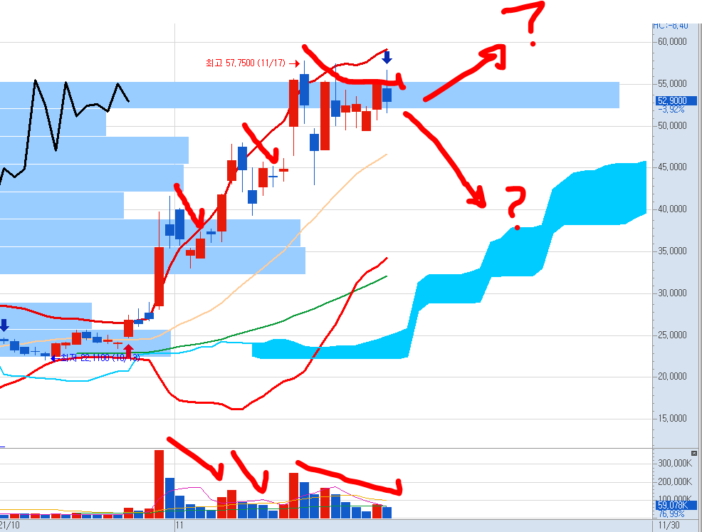 아직 반등은 없었으므로 더 아래까지 조정받을 가능성도 다분합니다.