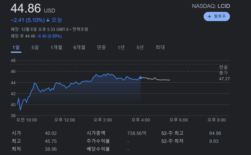 오늘 루시드그룹은 조정을 받아 5% 이상 하락했습니다.