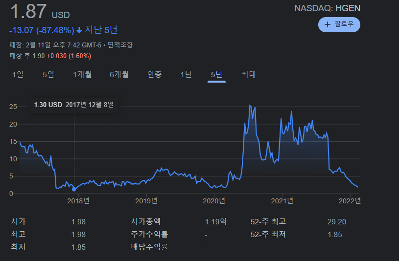 | 서서히 가라앉는 휴머니젠 HGEN 시황 (0) | 2022.02.09 |